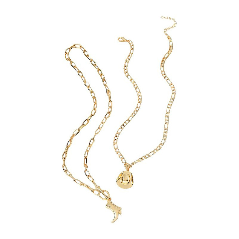 Amazon New European and American Fashion Alloy Pendant Cowboy Hat Cowboy Shoes Necklace Women's Trendy Personalized Niche Necklace