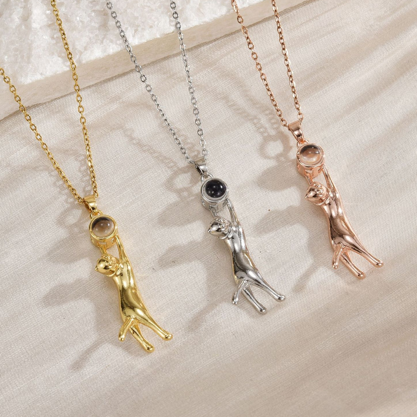 Kitten Projection Necklace Female Picture Foreign Trade European and American Female Cat Clavicle Chain 100 Languages I Love You Copper Pendant