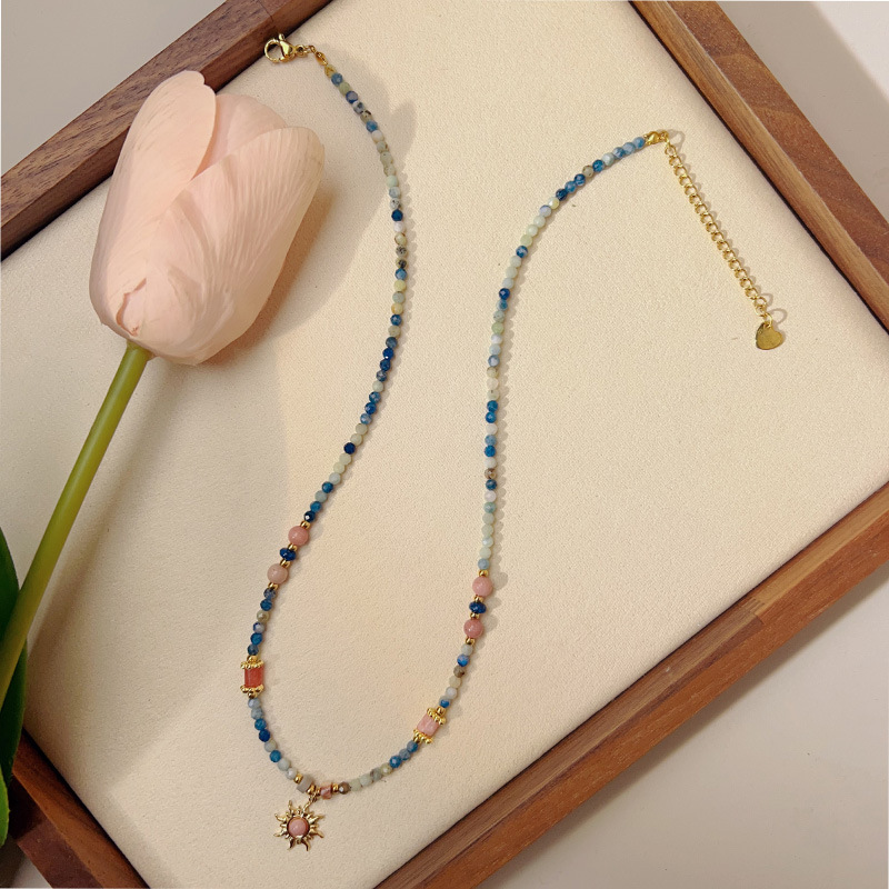 Original design Red Stone small sun pendant natural stone beaded necklace exquisite sweet all-match niche necklace for women