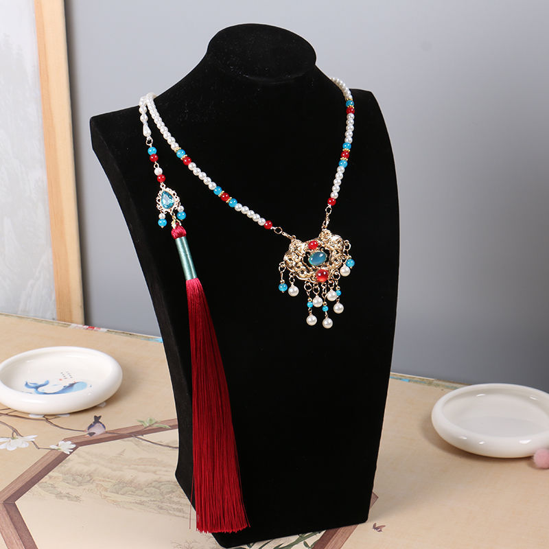 Hanfu soft ruoluo back Cloud adult children necklace tassel longevity lock pendant pendant vintage ethnic style gold lock female