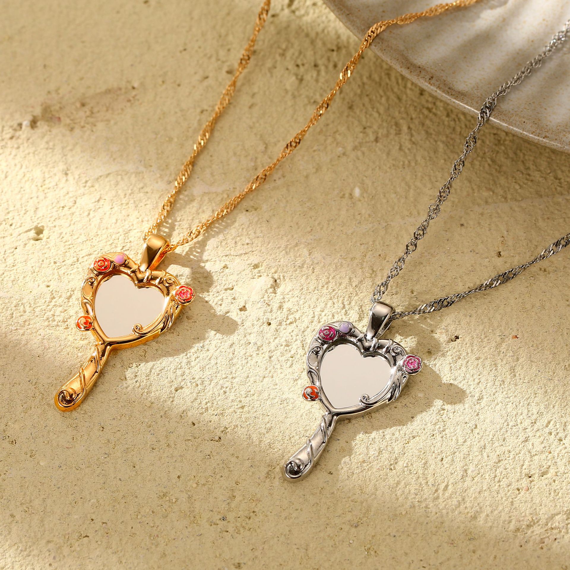 Barbie Magic Love Copper Plated Real Gold Necklace Women's Mirror Mirror Frame Dopamine Girls European and American Ins High-end Sense