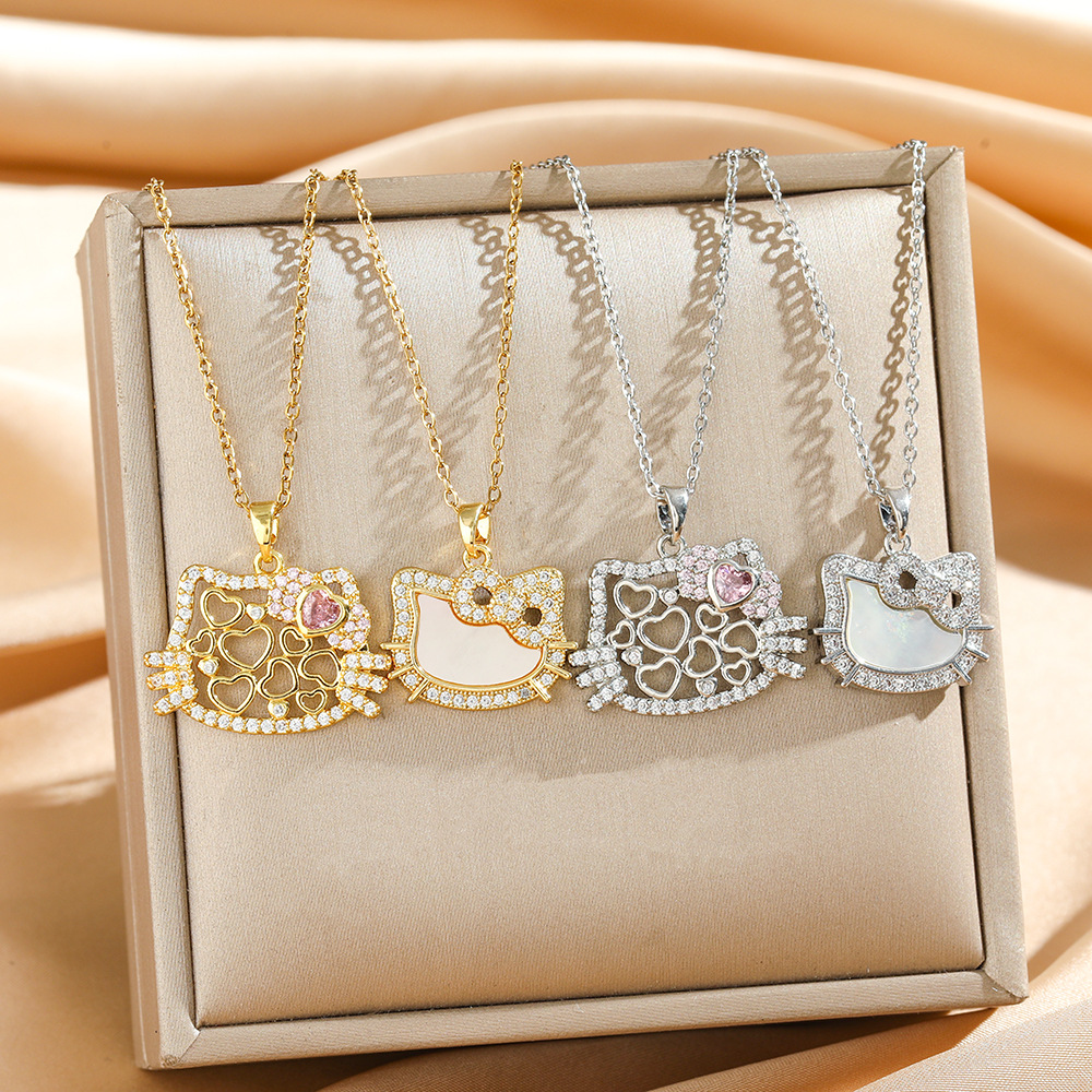 European and American Cross-Border Popular Cartoon Kitty Cat Diamond-Encrusted Titanium Steel Necklace Women's Fashionable Cute Cat Zircon Clavicle Chain
