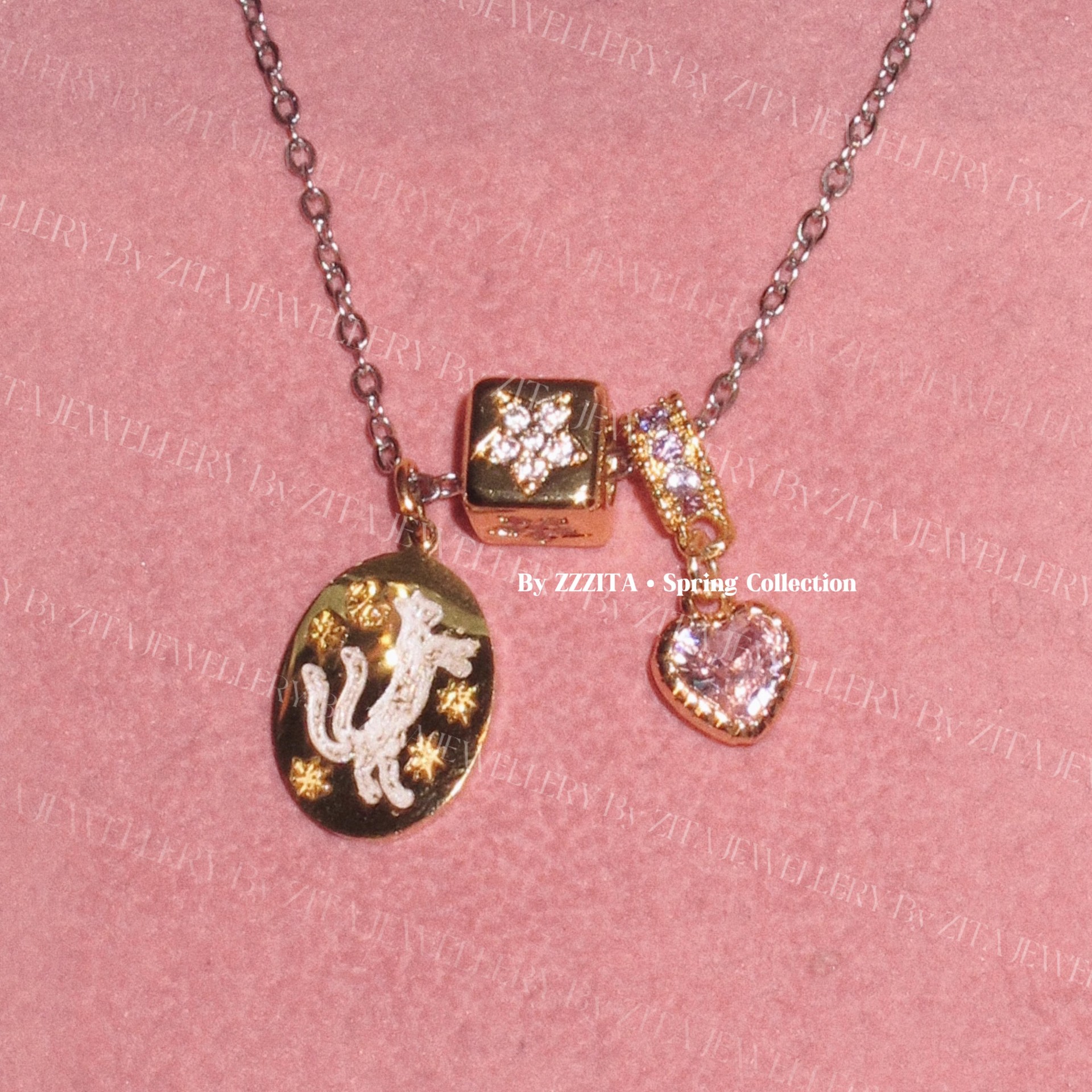 Sweet Five-Pointed Star Heart Cat Patron Saint Pendant Necklace with Diamonds, Niche Design, Versatile High-End Accessories