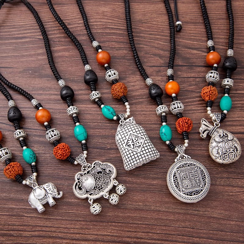 Vintage Necklace Xizang Silver Accessories Hanging Ornaments Time to Time Women's Collarbone Chain Long Wool Chain Cotton and Linen Accessories Pendant Trendy