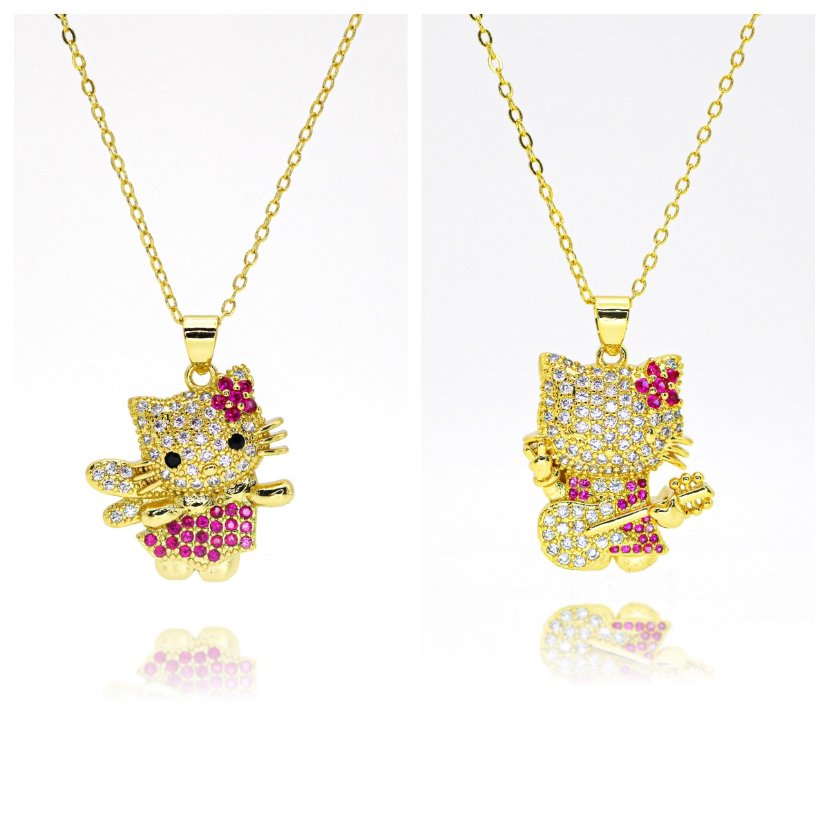 Hip Hop Style Cute Sweet Diamond Cat KT Pendant Necklace Luxury Cartoon Cat Necklace Elegant Fashion Jewelry