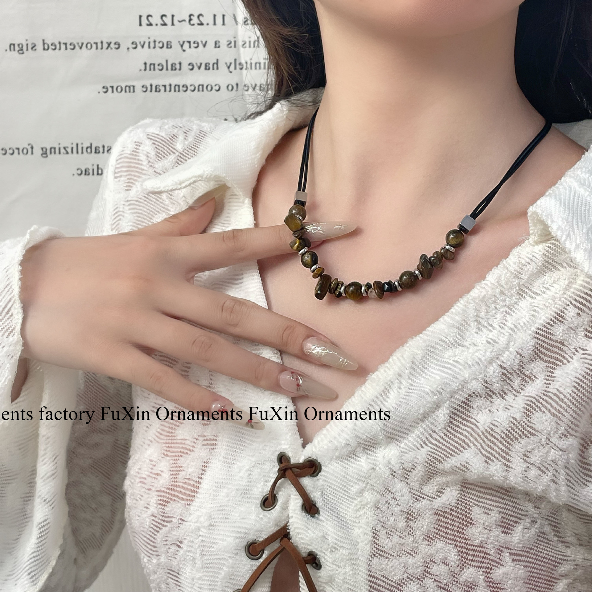 Brown Tiger's Eye Stone Niche All-match Necklace Fashion Trend Hip Hop Style Girl's Design High-end Clavicle Chain