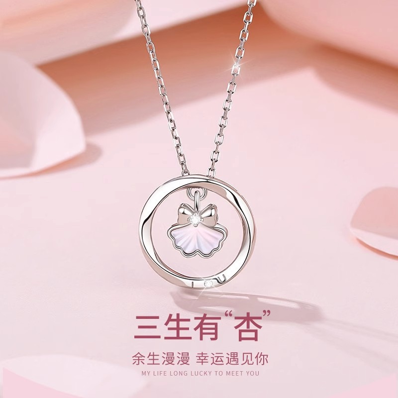 Mobius ring necklace for women ins style light luxury niche design high-grade sweet girl heart ginkgo clavicle chain