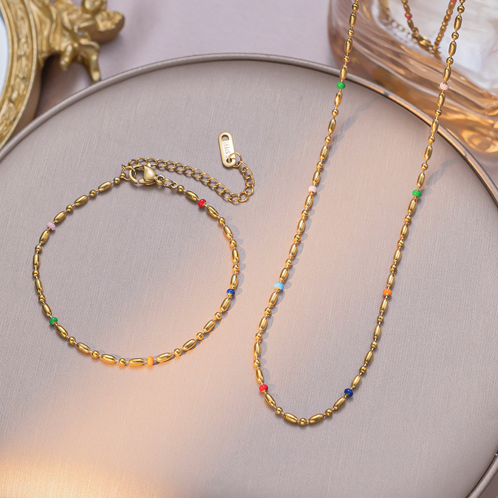 French Entry Luxury Rainbow Drop Glaze Titanium Steel Necklace Women's Fashion All-match High-end Clavicle Chain New Exquisite suit