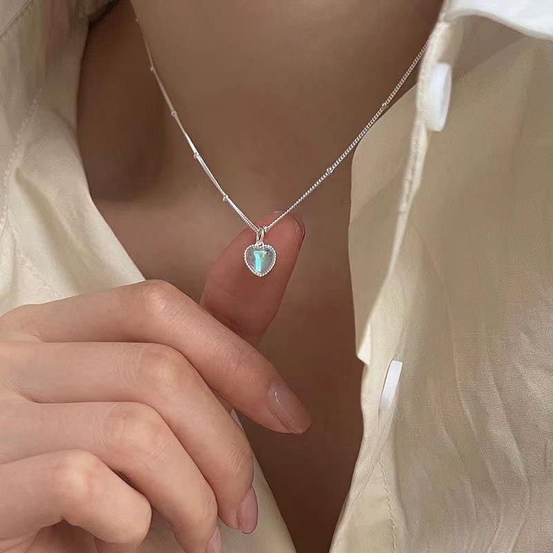 Gradient colorful stone heart-shaped clavicle chain female French sweet girl feeling small Moonstone heart-shaped necklace turn good luck