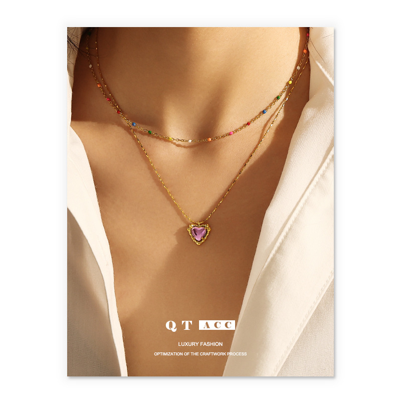 Cross-border French non-fading love necklace girl heart-shaped design titanium steel clavicle chain wholesale jewelry