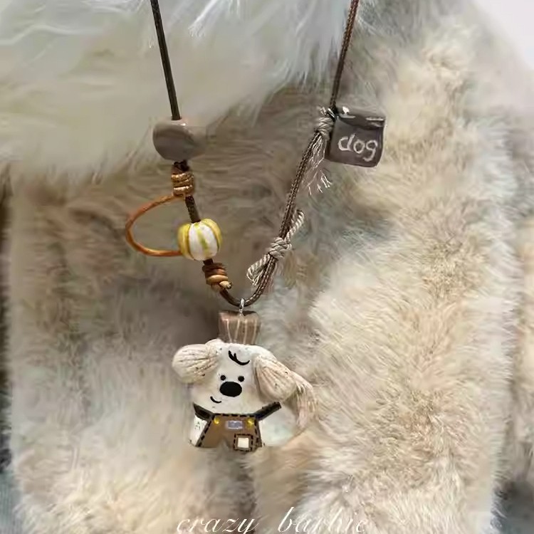 "Puppy Barista" Cute Puppy Necklace Wool Chain High-end Sense Design Retro Niche Accessories Women's New