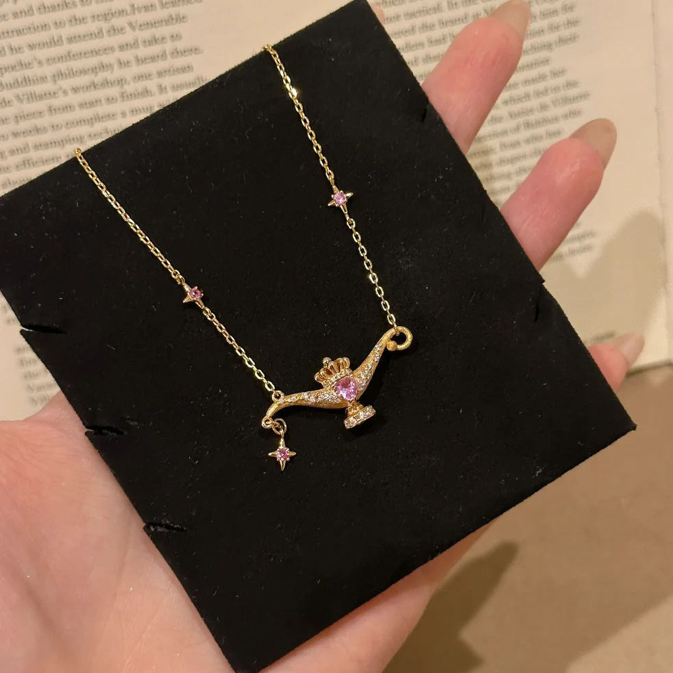 Little Red Book Pink Love Aladdin Divine Lamp Pendant Necklace Women's Sweet Design Sense Escape Princess Light Luxury Collarbone