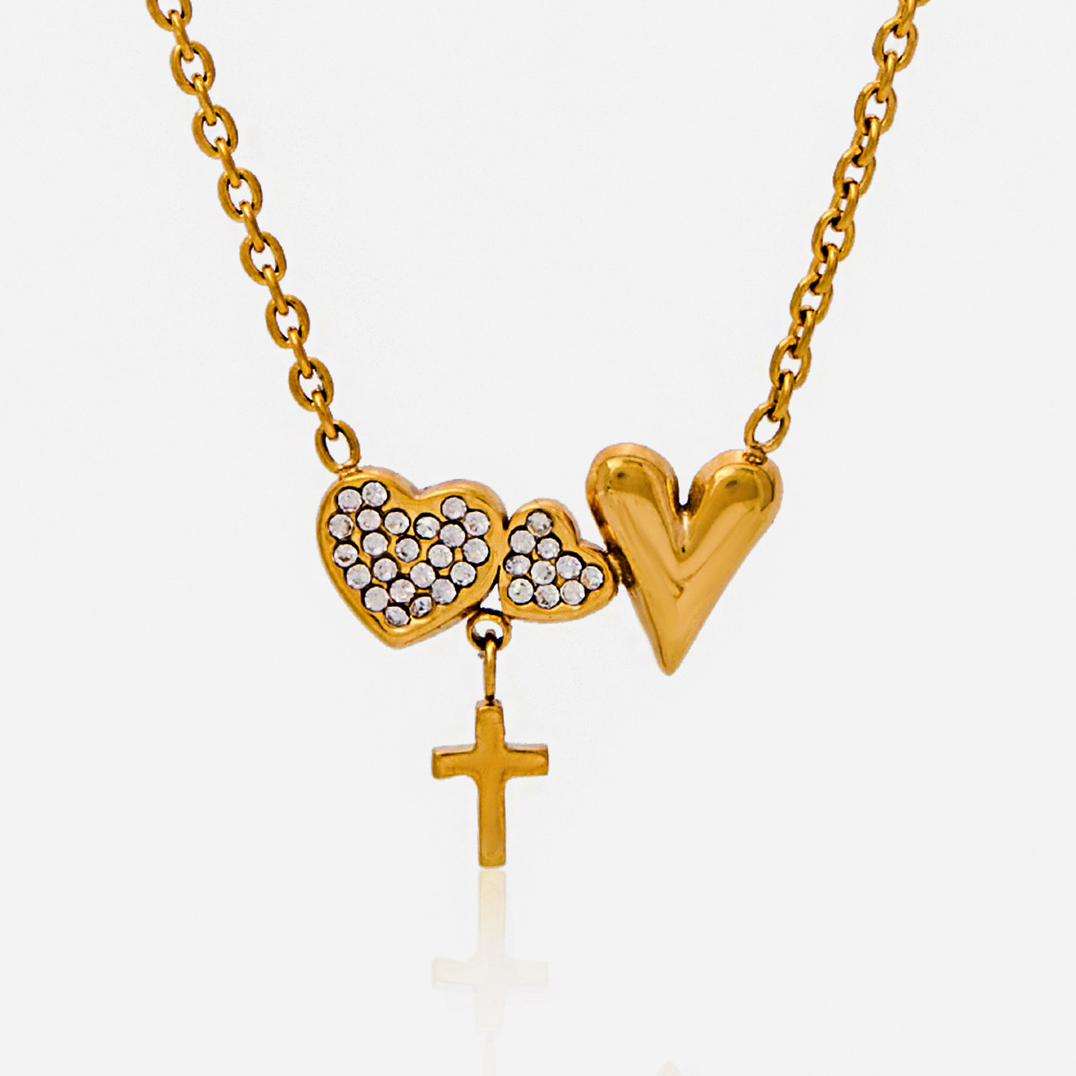 Quiet and Beautiful Design, Sweet and Romantic 18K Gold Stainless Steel with Diamond Heart Cross Glossy Heart Necklace Jewelry