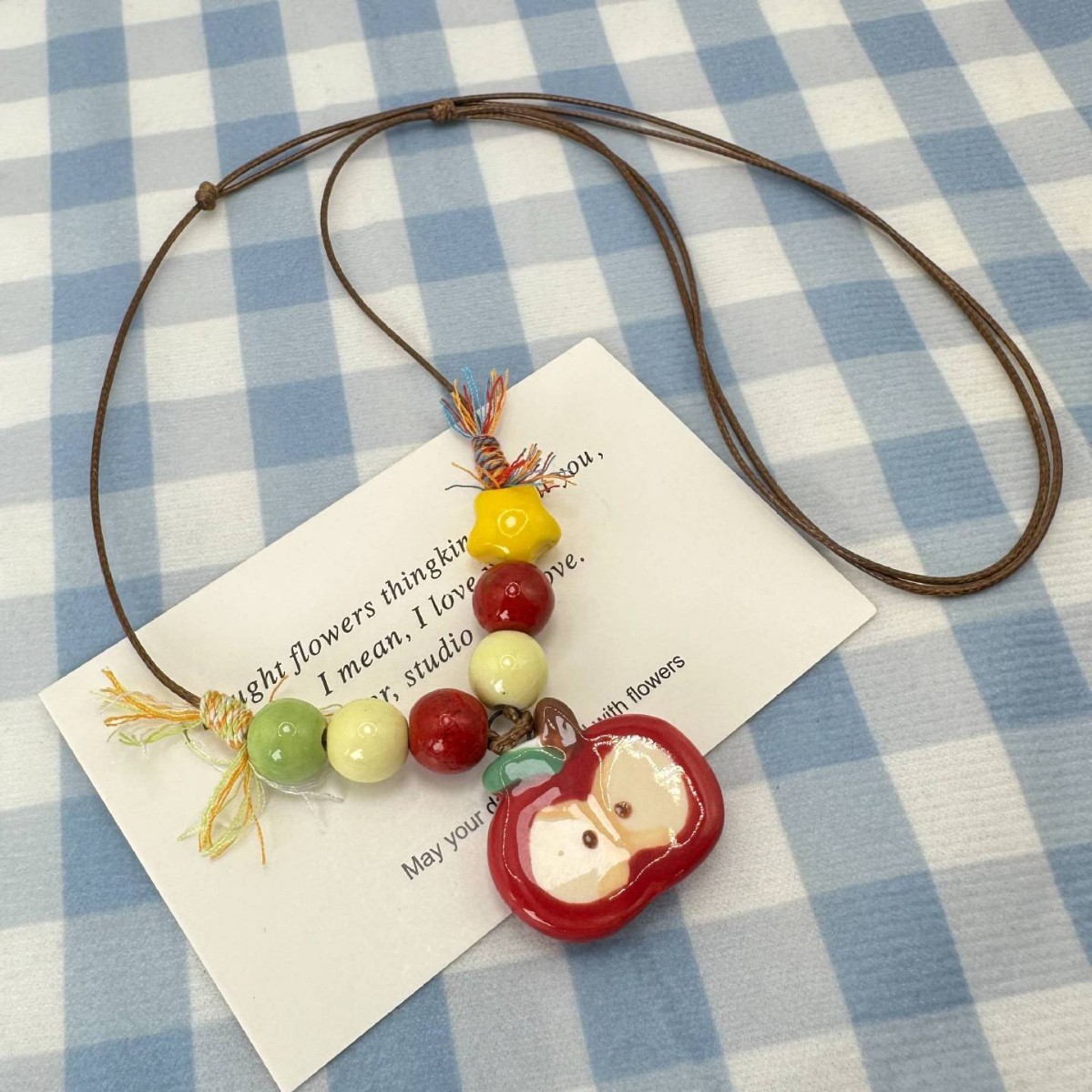 Jingdezhen Ceramic Sweet Apple Fresh Dopamine Beaded Niche Sweet Collarbone Whitening Temperament Gift Necklace