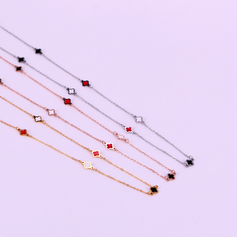 X1-105-2 Korean Versatile Elegant Sweet Titanium Steel Nine Black and White Red Oil Dripping Four-Leaf Flower Necklace Zz