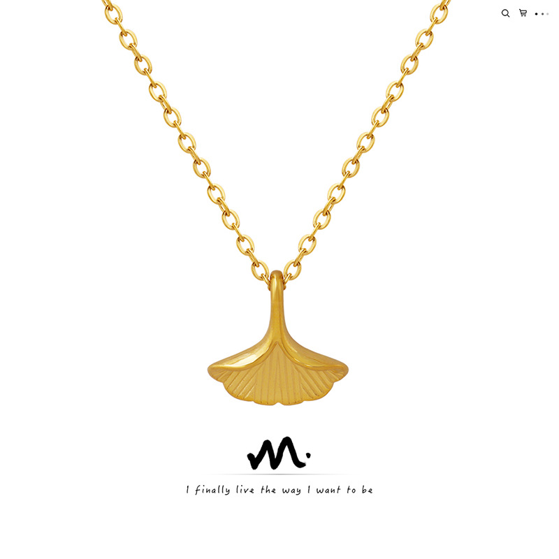 O-Chain Women's Light Luxury Fashionable Geometric Ginkgo Leaf Skirt Pendant Necklace Korean Niche Design Sense Accessories