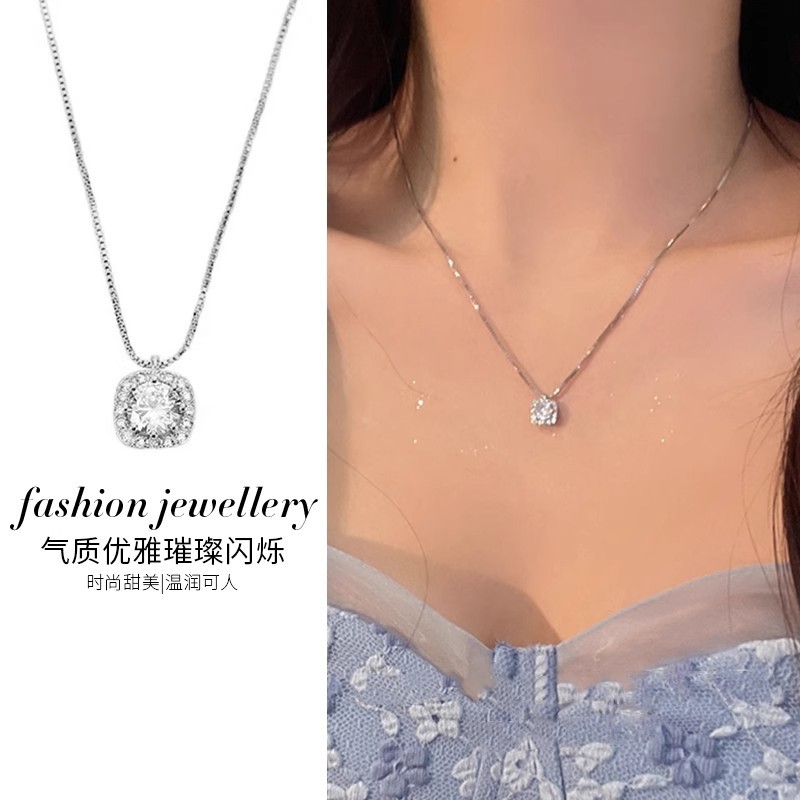New Imitation Zircon Pendant Necklace Girl Student Simple Clavicle Chain Silver Girl Necklace Small Gift