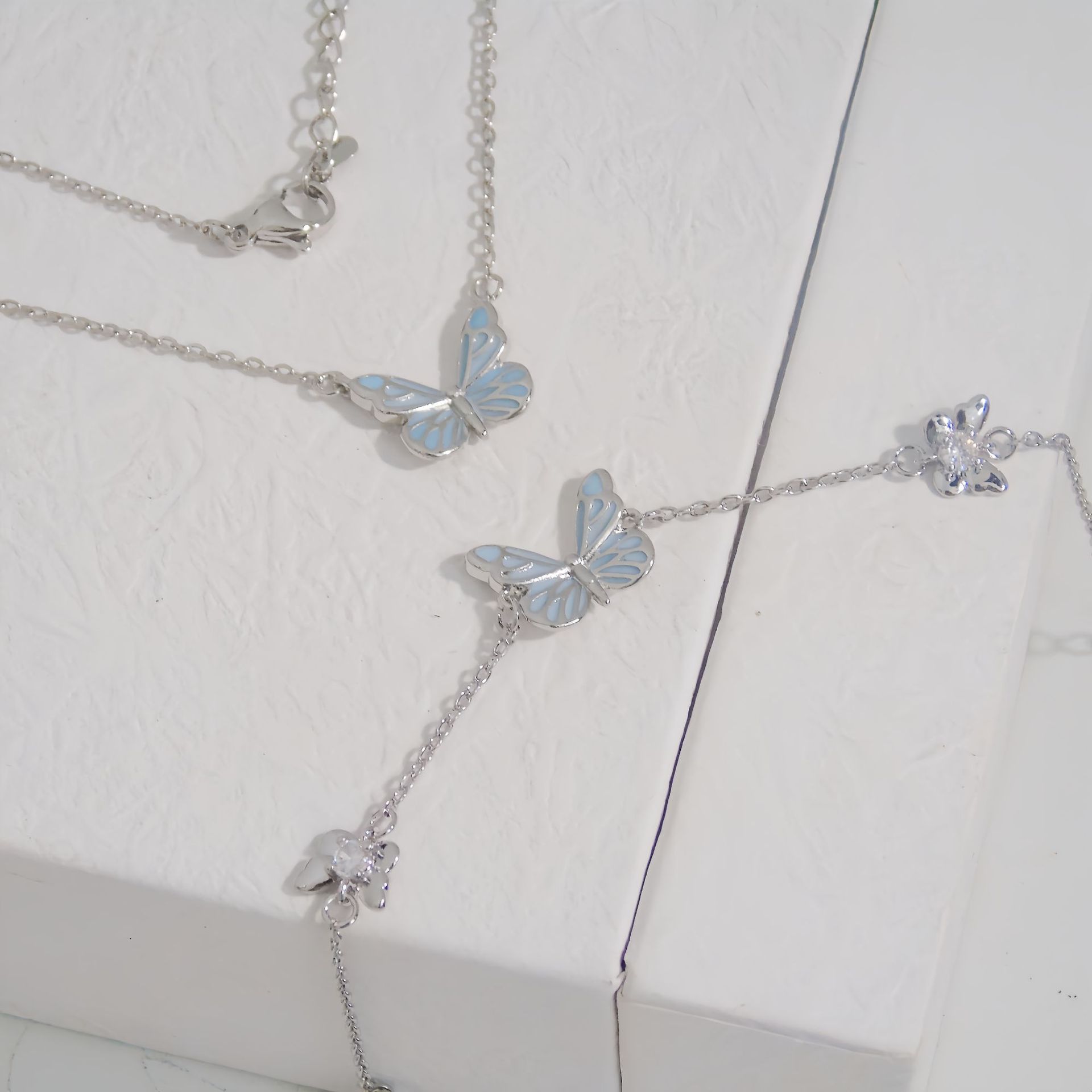 Glow-In-The-Dark Butterfly Necklace for Women, Light Luxury Fashion, Blue Luminous Niche Forest Style Girl Clavicle Chain, Valentine's Day Gift for Girlfriend