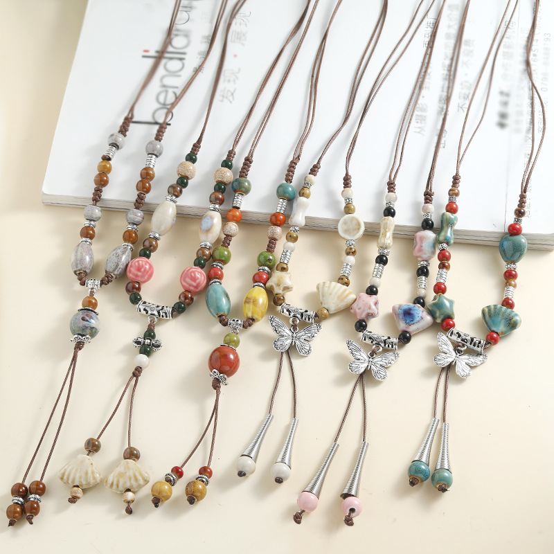 Xiaohongshu's Best-Selling New Chinese-Style Ceramic Necklace Jewelry Long Antique Butterfly Pendant Girls Ethnic Style Accessories