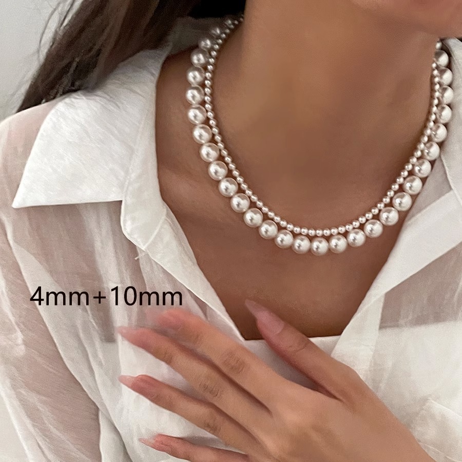 Removable double-layer stacked Shijia pearl necklace retro casual sweet and expensive clavicle chain