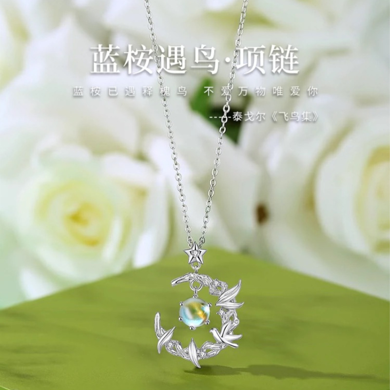 Eucalyptus and Bird Necklace Female Niche Elegant Light Luxury Design High-grade Texture All-match Sweet Collarbone Chain for Girlfriend