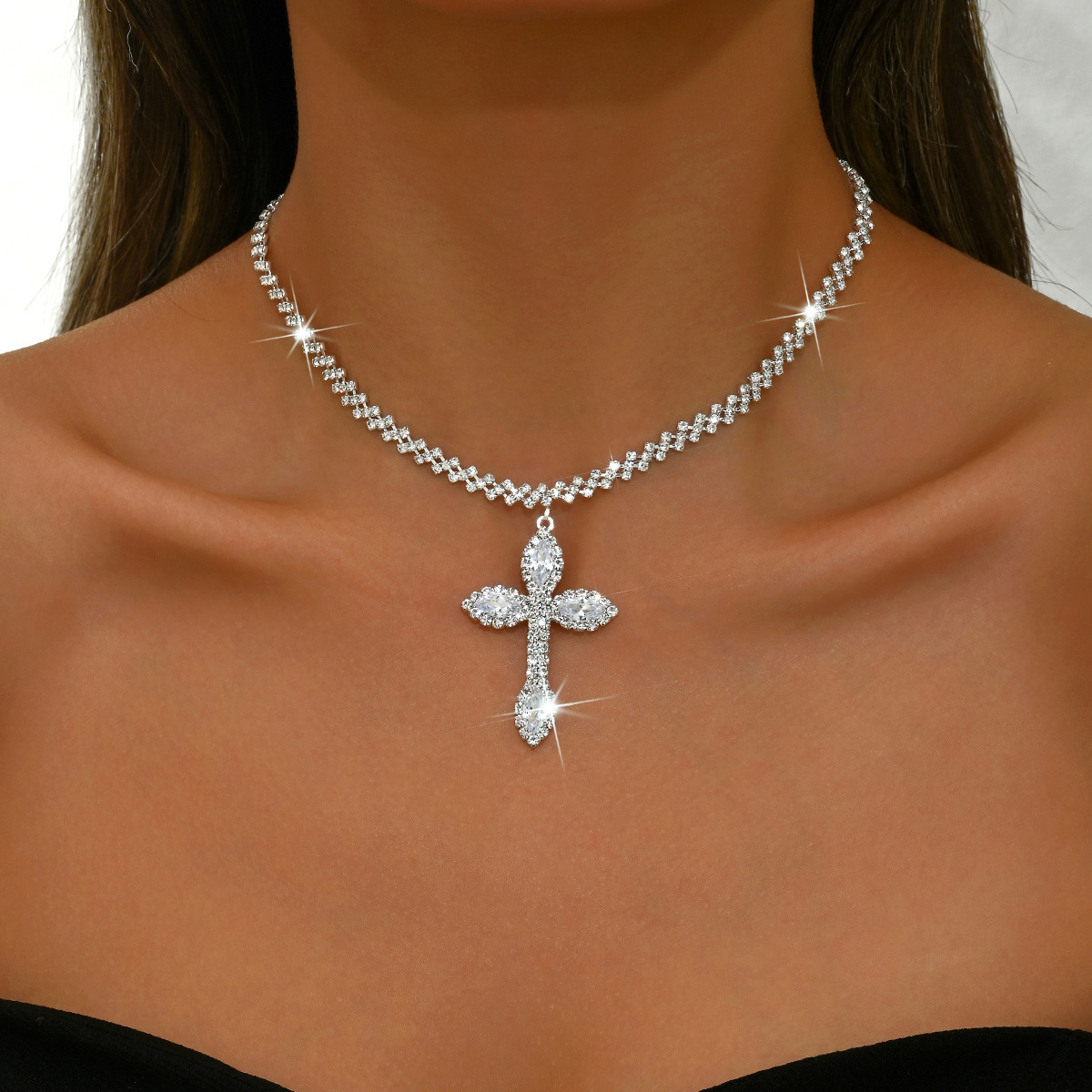 Cross-border Trendy Cross Necklace Design Rhinestone Necklace Banquet Shiny Accessories Women Necklace