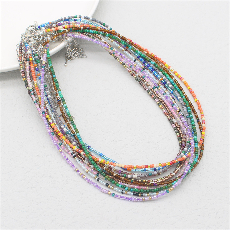 Korean style bohemian macaron beaded rice beads necklace sweet girl style all-match necklace