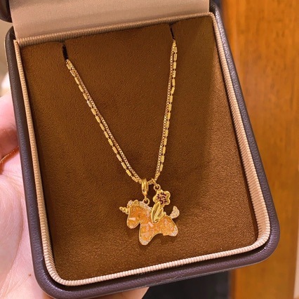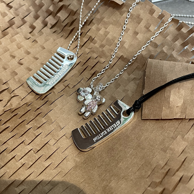 South Korea blogger with bear necklace girl dopamine niche pink fashion clavicle chain small comb sweater chain