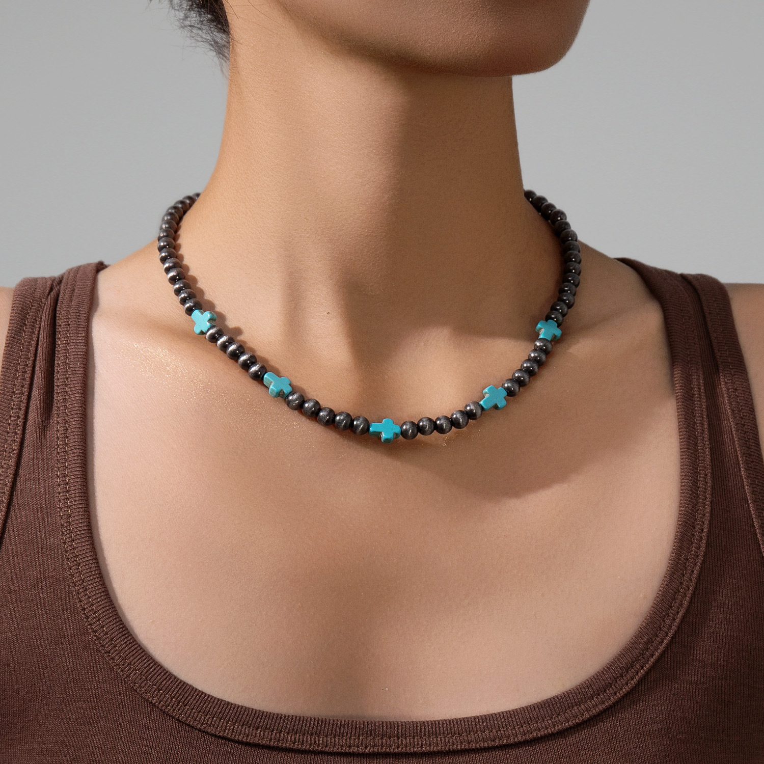 Cross-Border Retro Ethnic Style Navojo Beaded Turquoise Cross Adjustable Women's Necklace Jewelry