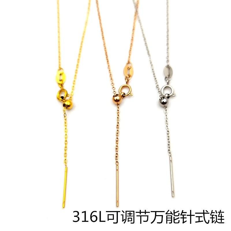 Titanium Steel 316L universal adjustable pin chain popular Net red girls all-match thin chain rubber beads to adjust the length of the chain