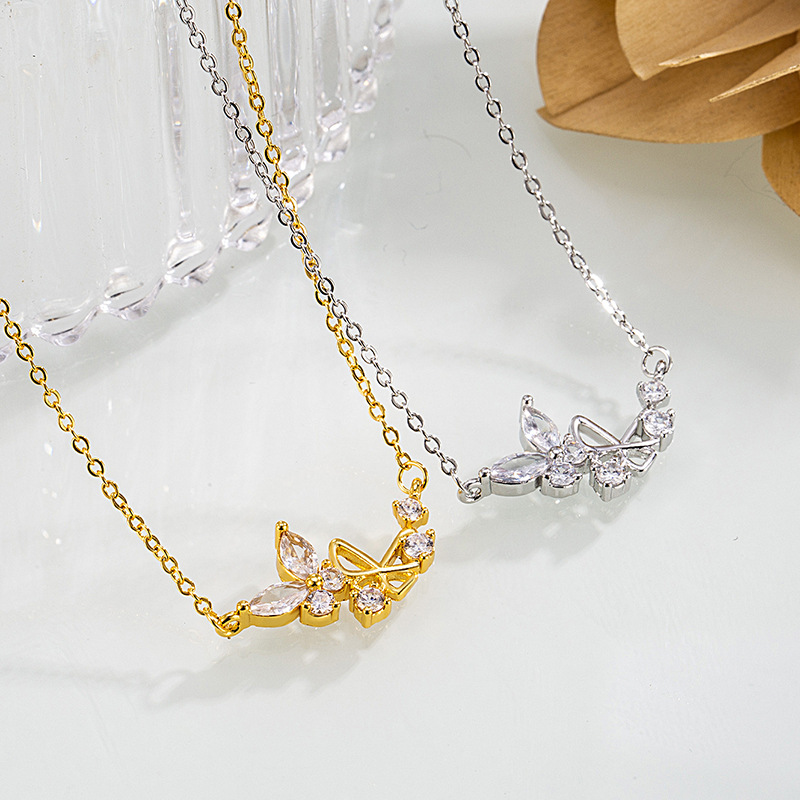 Gradient Butterfly Wings Cross Necklace Girls Niche Design Clavicle Chain Necklace 2025 New Trend