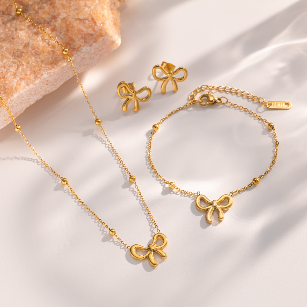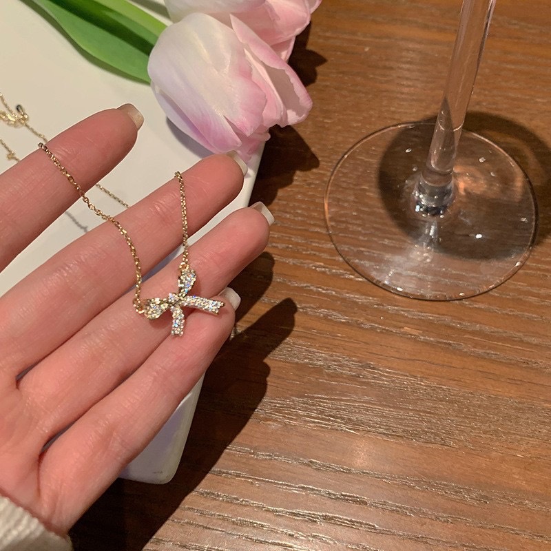 S925 Sterling Silver Plated 18K Gold Hao Bow Girl Sweet Necklace ins Niche Design Sense Exquisite Clavicle Chain for Women