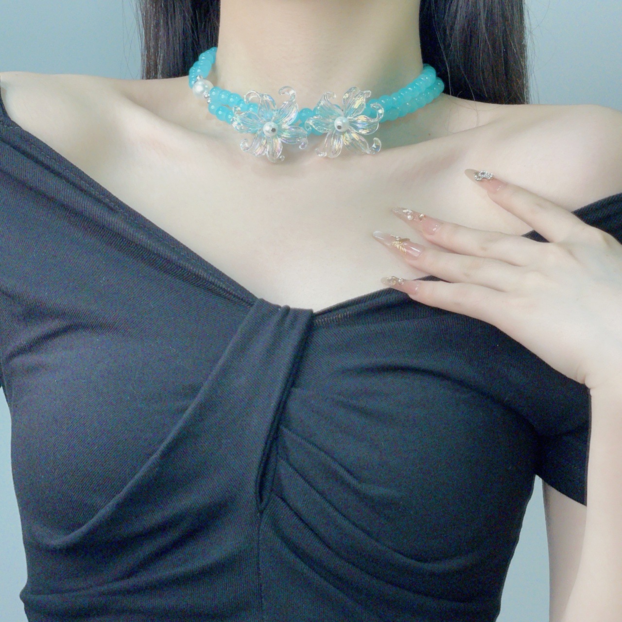 Summer Atmosphere Flower Pearl Double-Layer Necklace Romantic Sweet Fresh Girly Clavicle Chain Retro Jewelry