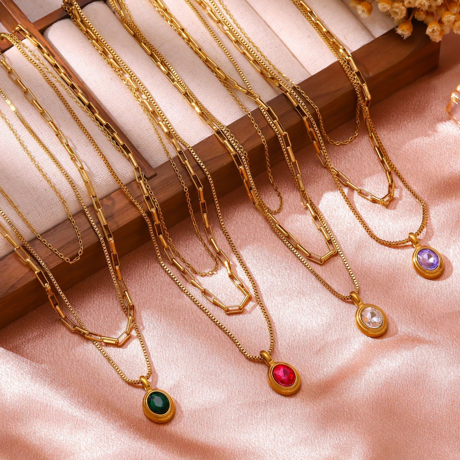 European and American Cross-Border High-End Round Pendant Necklace Layered Titanium Steel Clavicle Chain Fashionable and Versatile Women's New Product