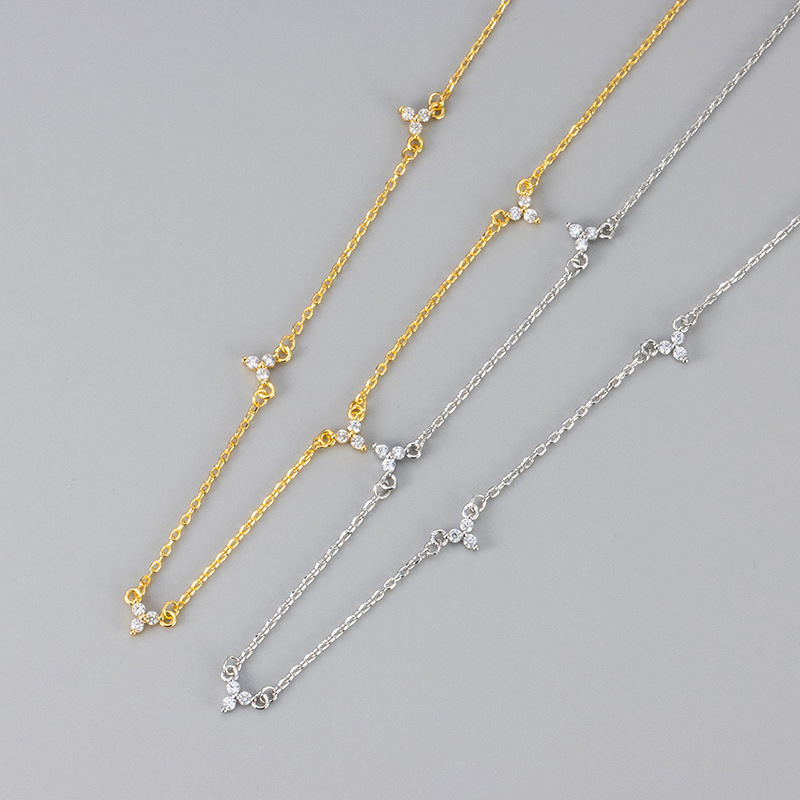 New European and American Cross-border Micro-inlaid Three Zircon Design Geometric Triangle Necklace Exquisite Sweet Mini Elegant Women's Fashion