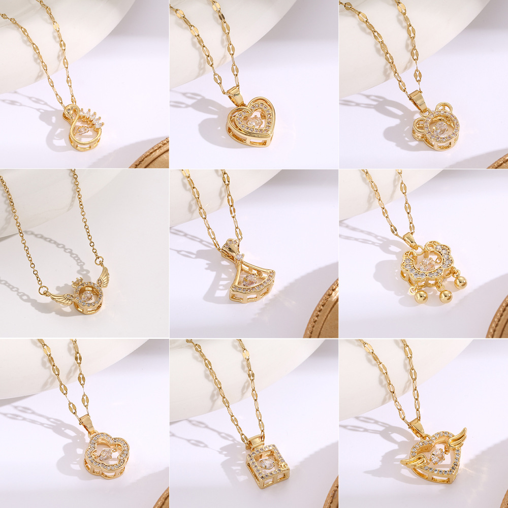 One Hundred Smart Series Live Selling Necklace Women's Micro-inlaid Full Diamond Beating Heart Hanging Titanium Steel Pendant Clavicle Chain Jewelry