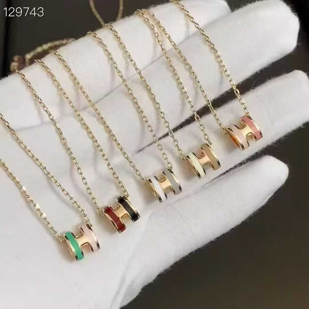 Aijia High Version H Double Color Necklace Women's Versatile Fashion Niche Accessible Luxury Sweet Enamel Women's Mini Pendant