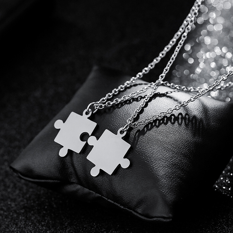 Couple Building Block Puzzle Necklace for Women, Titanium Steel Friendship Splicing Two-In-One Sweater Chain, Hip-Hop Trendy Non-Fading Pendant