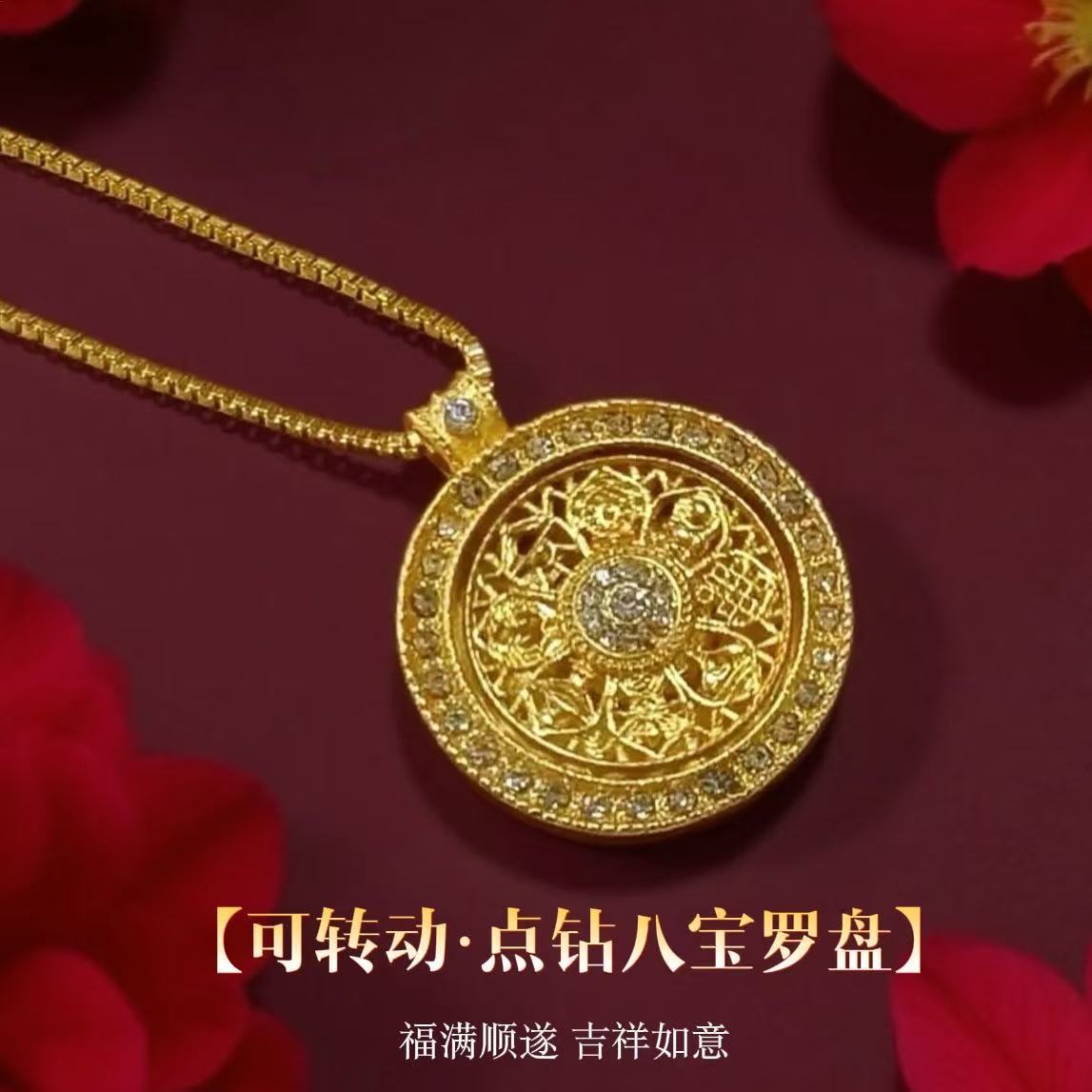 Gold Store Same Style Rotatable Diamond Eight-Treasure Compass Necklace for Women, Ancient Alloy Diamond Necklace, Hot Selling on Kuaishou and Douyin