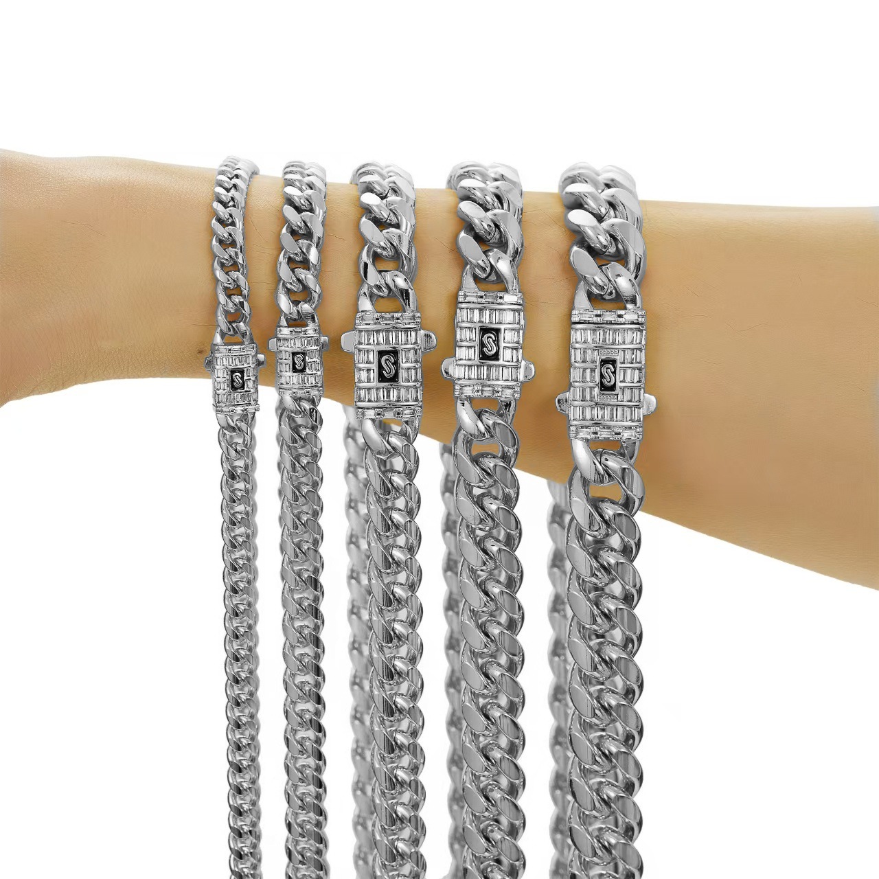 Titanium Steel Cuban Chain Necklace Stainless Steel Encrypted Round Polished Chain Jewelry Buckle Men's Thick Domineering Stylish Accessories