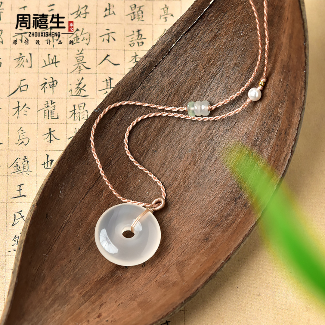 Agate Pendant Female Male Ice White Agate Chalcedony Pendant Pendant Pendant Pendant Jade Pendant Jade Necklace Wool Chain