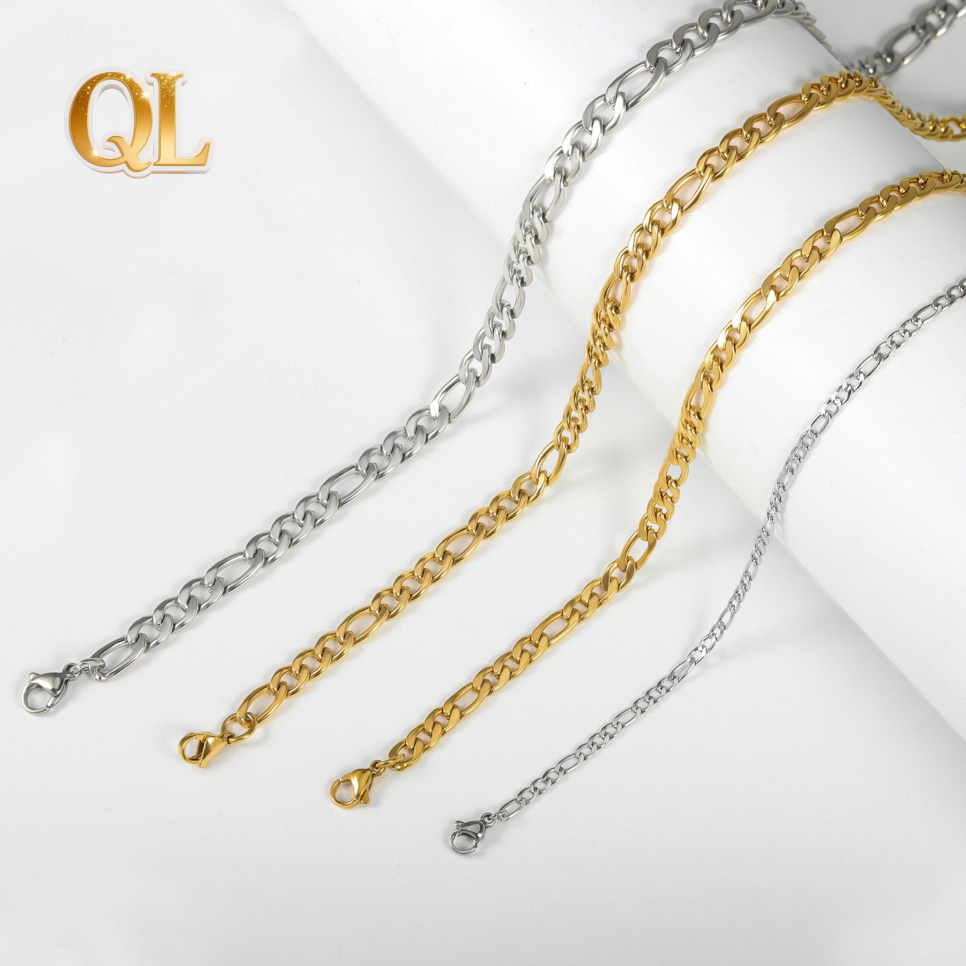 Figaro chain titanium steel necklace women stainless steel necklace European and American new men's gold thick chain lock women