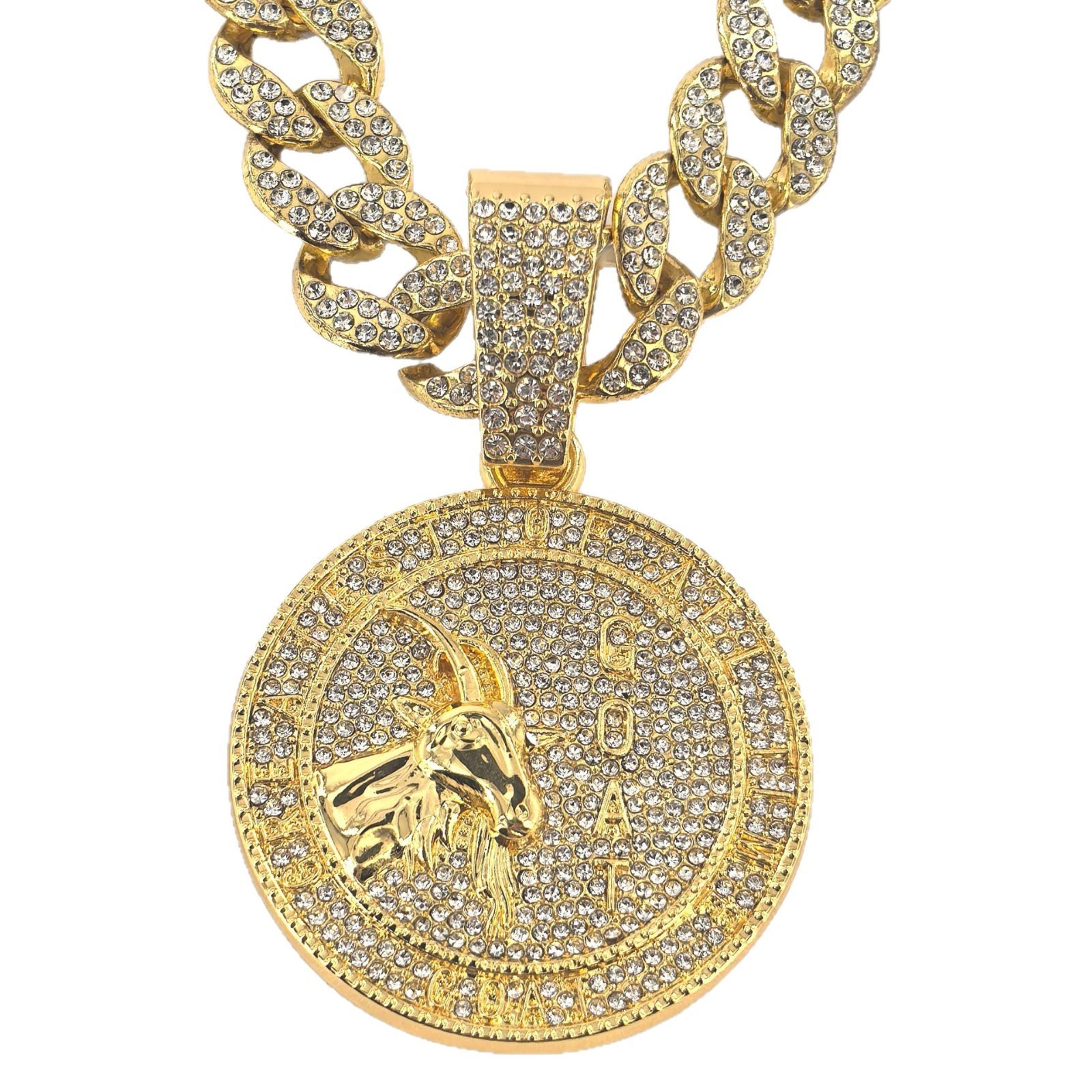 Hip-Hop Jewelry Goat Head Round Pendant Personalized Exaggerated Men's Full Diamond Large Round Punk Style Cuban Necklace