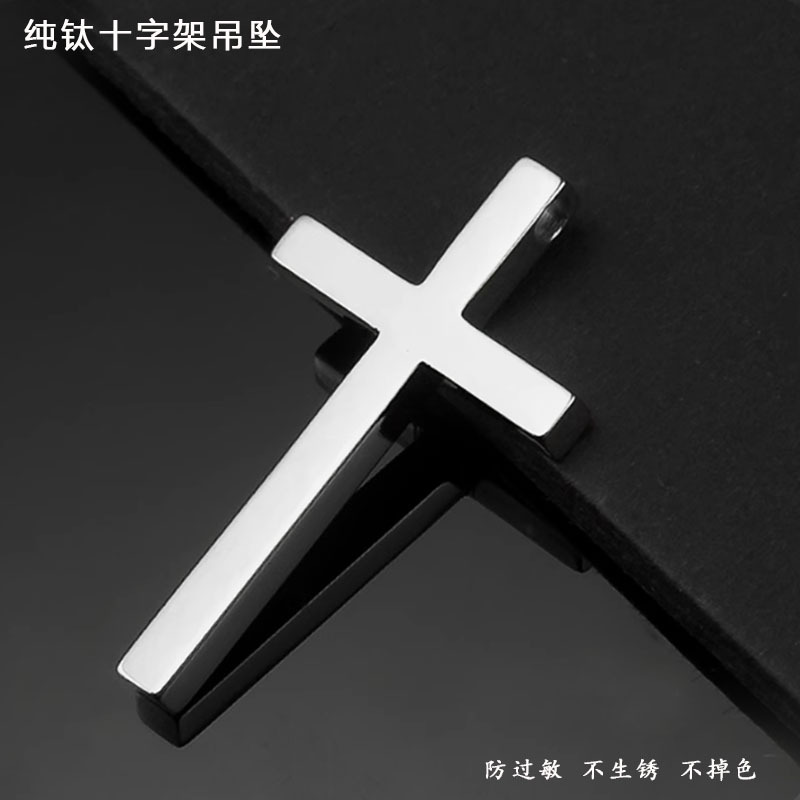 Pure Titanium Cross Necklace Men's Trendy Summer Men's Pendant Women's Allergy Lettering Figure Jewelry Hip Hop Accessories