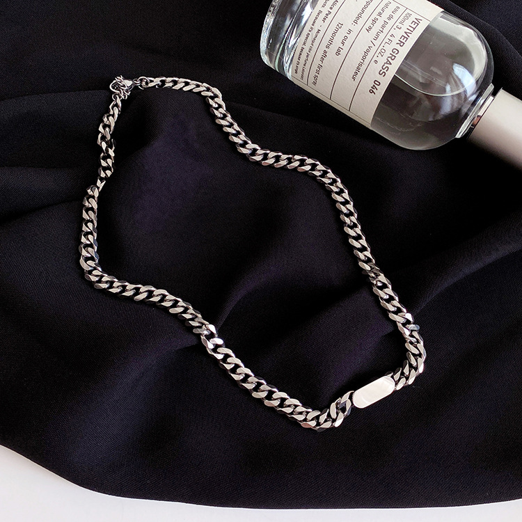 European and American Style Simple Fashion Men's and Women's Cuban Necklace Men's and Women's Glossy Titanium Steel Clavicle Chain Personality Temperament Jewelry