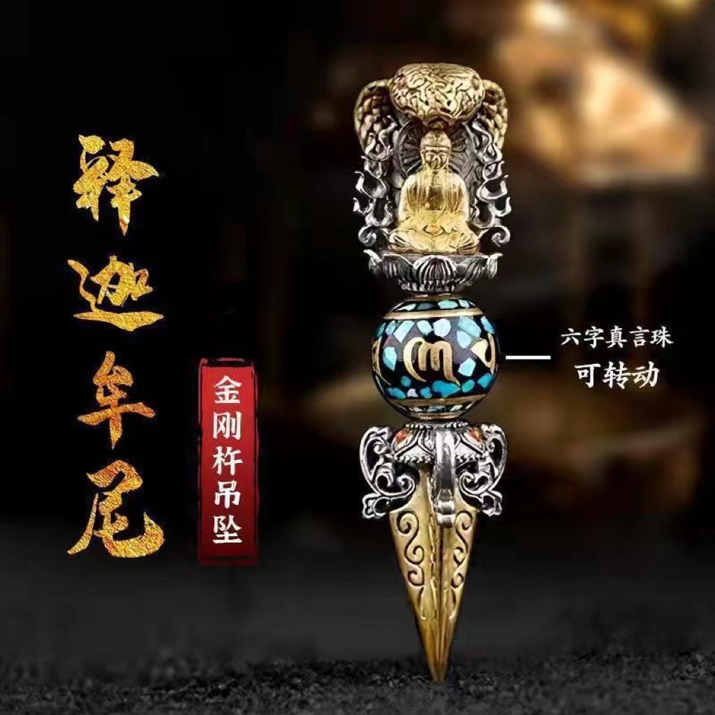 Retro ethnic style six-character mantra Sakyamuni Vajra pestle necklace men's rotatable domineering generous creative jewelry