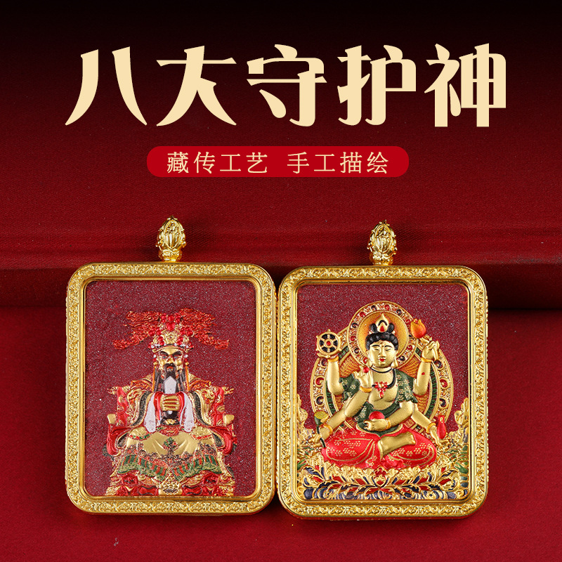 Cinnabar Thangka Xizang-style Thangka Pendant Purple Gold Sand Eight Patron Deity Wuye Xizang King Men's and Women's Necklace Pendant