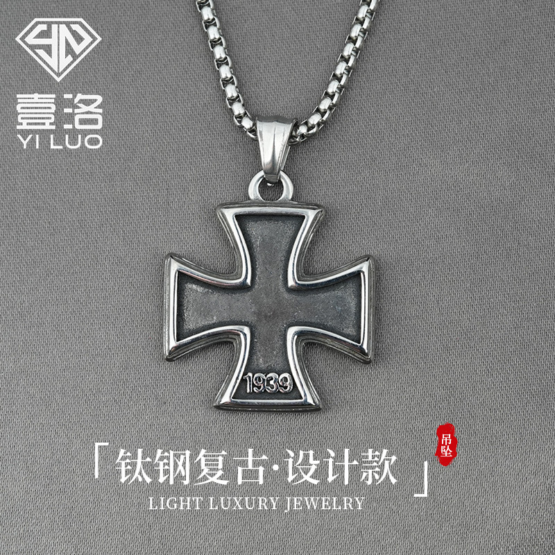 Europe and the United States foreign trade Amazon jewelry tremolo live accessories Cross 1939 boys titanium steel necklace neutral sweater chain