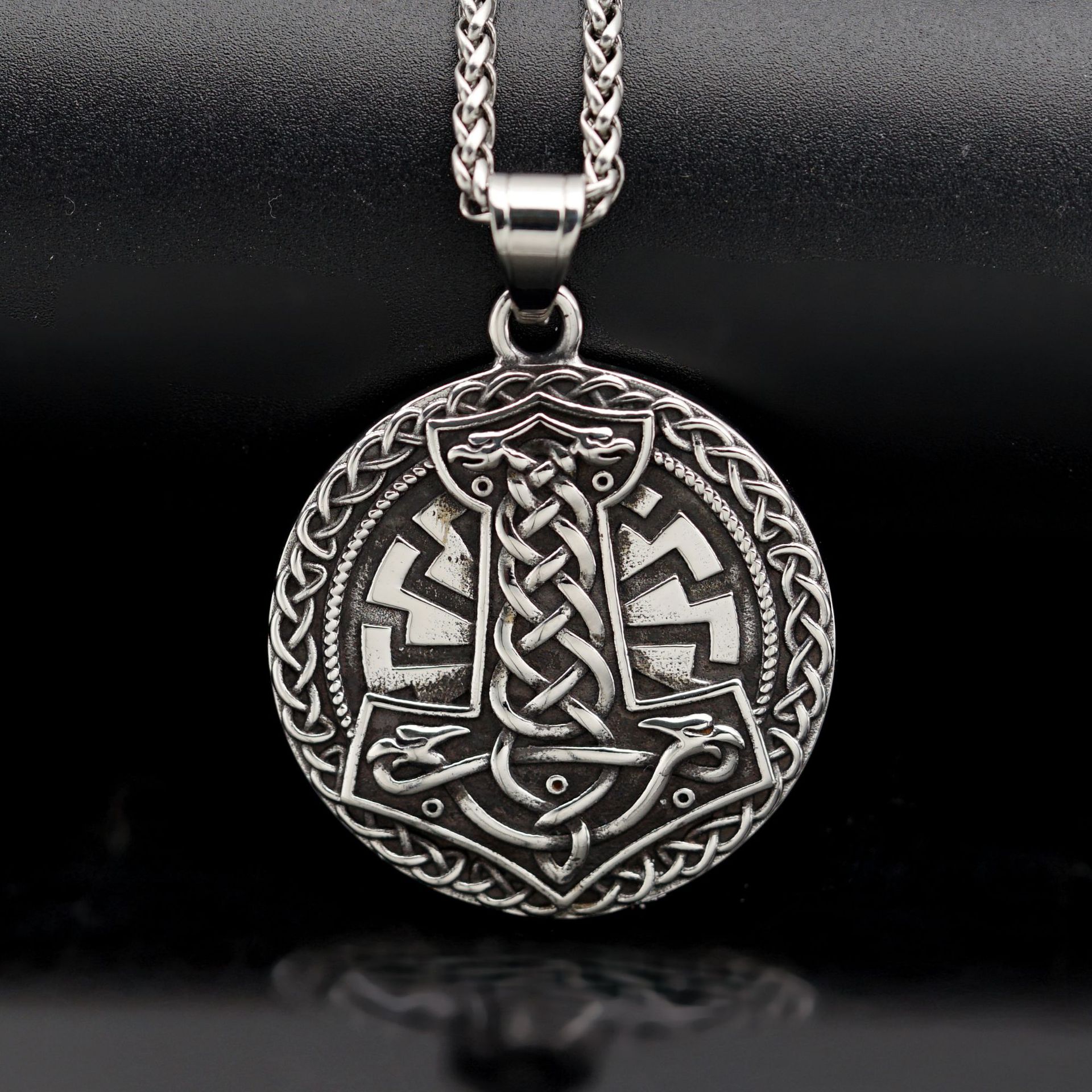Scandinavian Retro Viking Odin Thor's Hammer Men's Titanium Steel Necklace Retro Trend Stainless Steel Pendant Wholesale