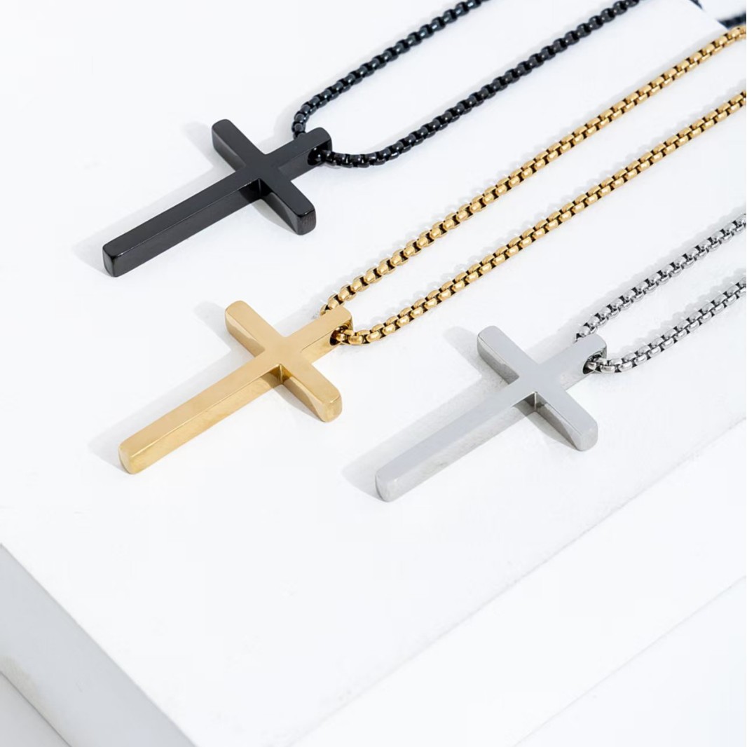 Cross-Border Stainless Steel Cross Necklace Men's Long Pendant Versatile Personalized Glossy Titanium Steel Necklace Cross Accessories